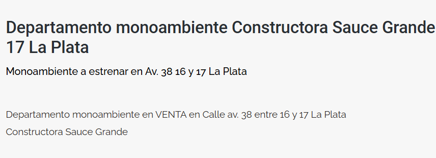 En el fondo de la red, es posible encontrar algún departamento en venta con su enunciación, pero sin presentar detalles de la misma.