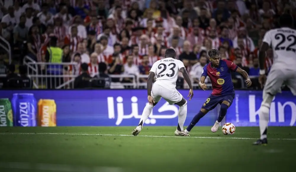En Yeda, Arabia Saudita, fue un baile del Culé, pese a que Mbappé había abierto la cuenta para el Merengue. A los 22 lo empató Yamal, el mejor futbolista del mundo, con un veloz ataque. A los 36, penal insólito de Camavinga que Lewandowski cambió por gol y allí se vino el vendaval: Raphinha se encontró con el tercero y a los 10 minutos de tiempo adicionado apareció Baldé para poner el cuarto gol del juego.